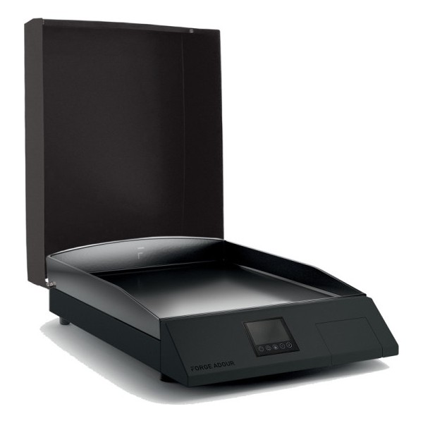 Plaque de cuisson fonte émaillée. LED indicateur de montee en temperature. Bac a graisse integre contenance 300ml. Manette de reglage. Chassis inox. Convives: 4 à 6 personnes. Dimensions: 365 x 555 x 145 mm.