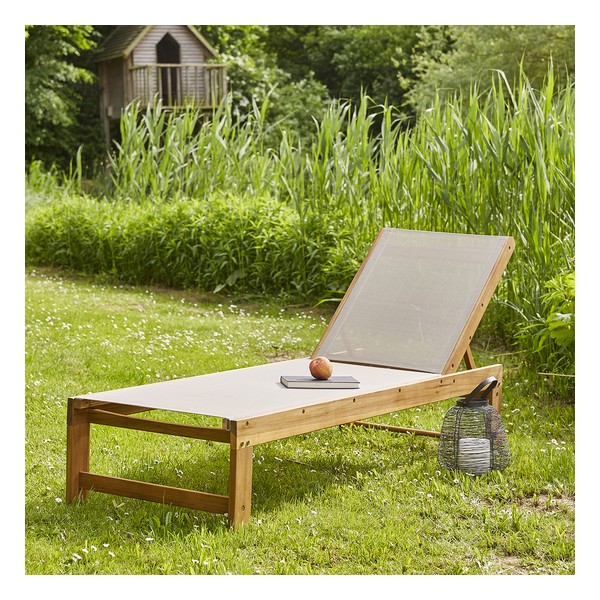 Idéale pour une petite sieste au soleil ou un moment détente. Inclinable jusqu’à la position allongée. Matière: bois d’acacia.