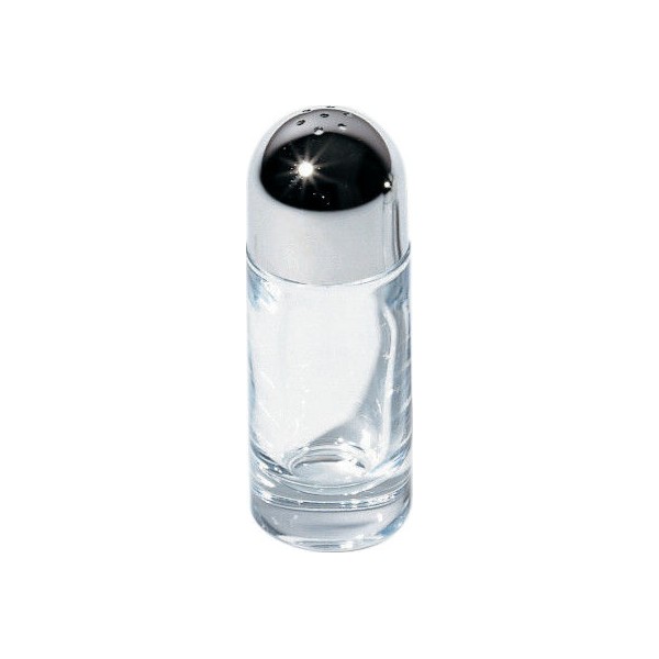 Poivrier en acier brillant et cristal. Capacité: 3.5 cl. Diamètre: 3.5 cm.