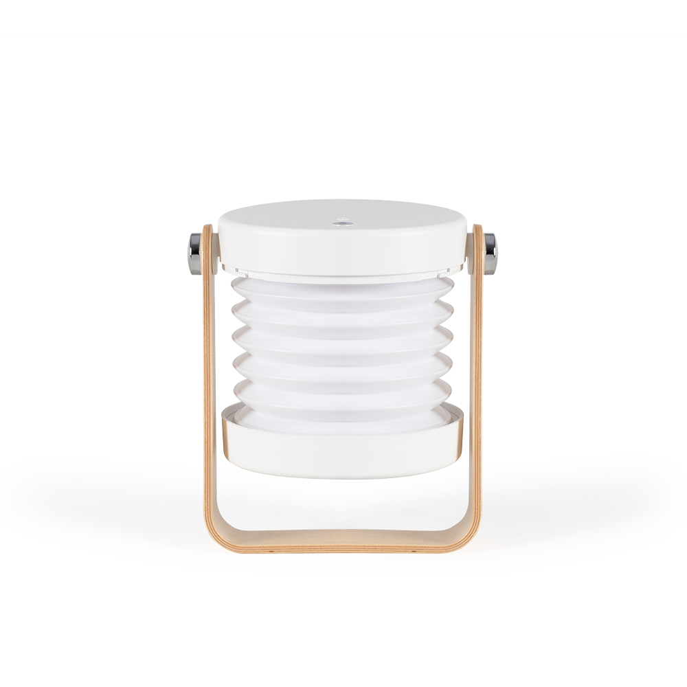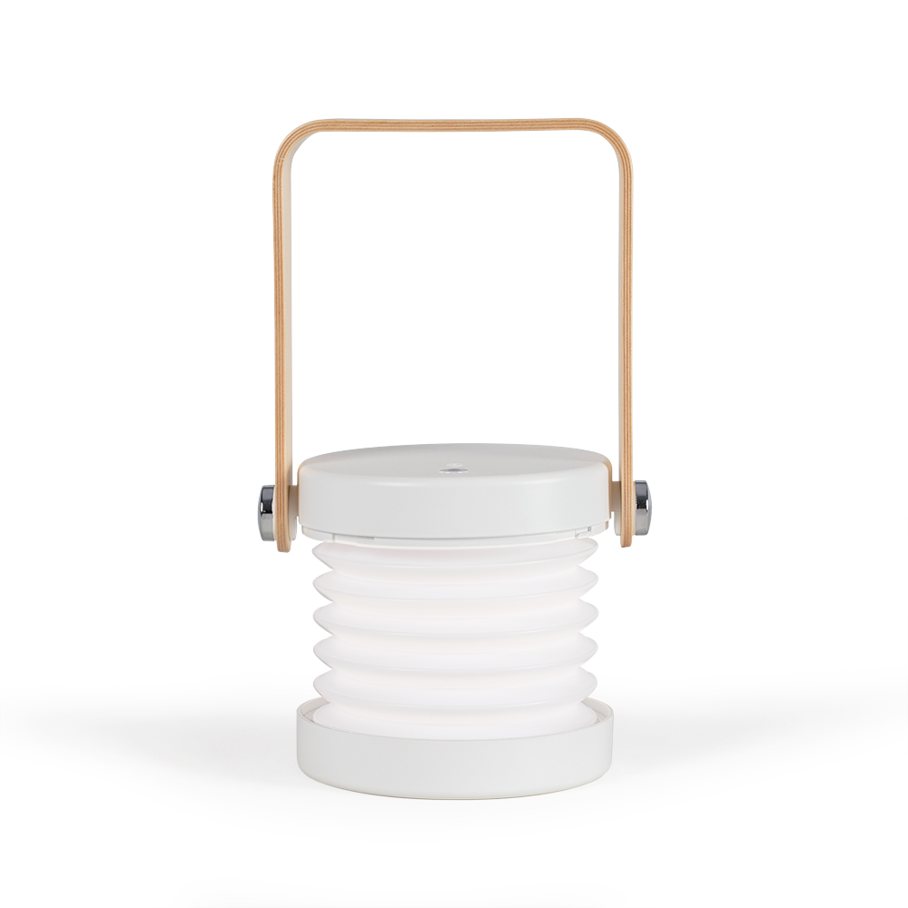 Modulable de 4 façons : lanterne portable, lampe de table, lampe torche, veilleuse. Touche tactile. 3 intensités lumineuses. Composée de 25 LED. Batterie Li-ion rechargeable 1200 mAh, Autonomie 5 h. Câble de chargement USB inclus.
