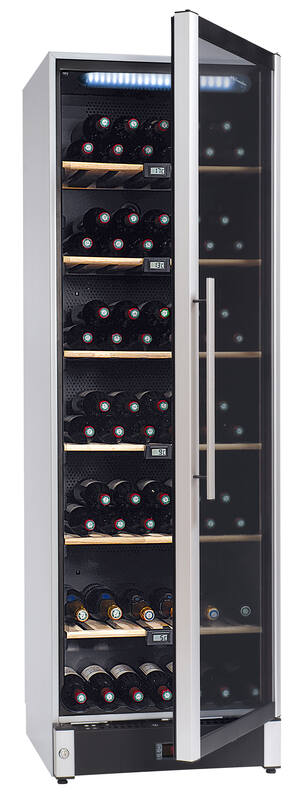 Cave a vin de vieillissement et de mise à température multi zone 195 bouteilles. 6 clayettes bois. Éclairage LED latéral. Porte vitrée anti-UV. 4 thermomètres digitaux. Alarmes sonores et visuelles : en cas de variation de température. 39dB. Classe énergétique G. Dimensions : 59.5 x 186 x 59.5 cm. Cave livrée sans bouteilles. L’abus d’alcool est dangereux pour la santé, à consommer avec modération. Livraison RDC / Pas de porte.