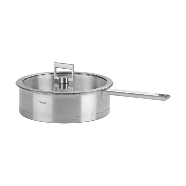 Sauteuse en inox 18/10 avec une finition brossée, poignée fixe en fonte d’nox et couvercle plat en verre. Tous feux, dont l’induction, passe au four (jusqu’à 300°C) et au gril. Passe au lave-vaisselle.
