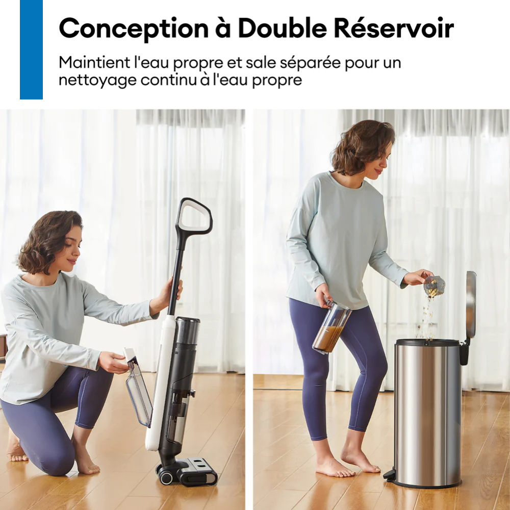 Puissance: 230 Watt. Autonomie: 35 minutes. Temps de charge: 360 min. Réservoir d’eau intégré, Brosse rouleau, Base séchante, Commandes intuitives. Batterie: 2000 mAH.