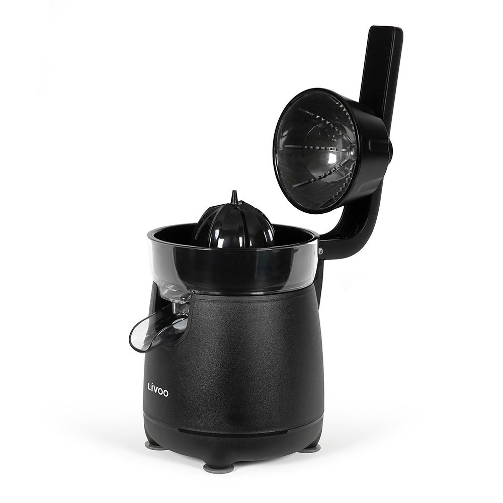 Puissance 120 W. 1 grand cône et 1 petit cône. Jusqu’à 140 tours par minute. Bras articulé de pression. Bec verseur anti-goutte pour se servir directement. Mise en marche automatique par simple pression du bras sur le cône. 4 pieds ventouses antidérapants. Accessoires démontables et compatibles lave-vaisselle.