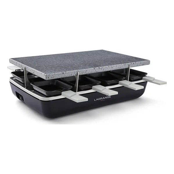 Inclus : 8 poêlons à raclette avec revêtement antiadhésif, 8 spatules à raclette en bois.