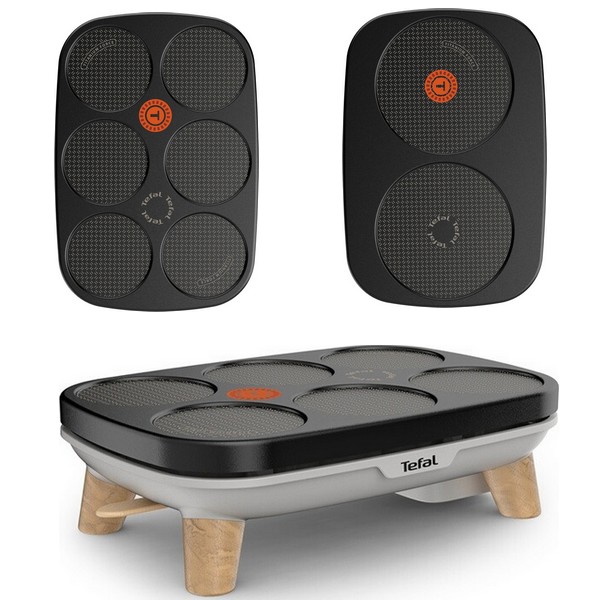 Puissance : 1100 W. 2 plaques interchangeables (deux empruntes pour des crêpes de taille moyenne et six empruntes pour des mini crêpes). Indicateur thermo-spot pour une température de cuisson idéale. Revêtement anti-adhésif longue durée et résistant. Accessoires : louche, répartiteur de pâtes, grande spatule, 6 coupelles, 6 spatules. Dimensions: 41.2 x 11.9 x 28.2 cm Fabriqué en France.