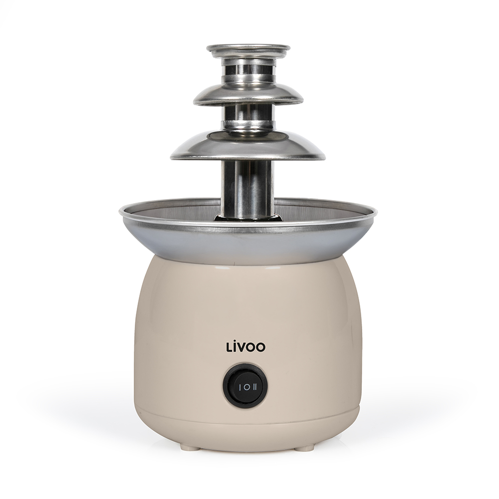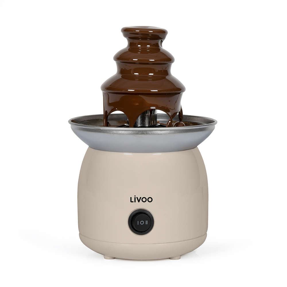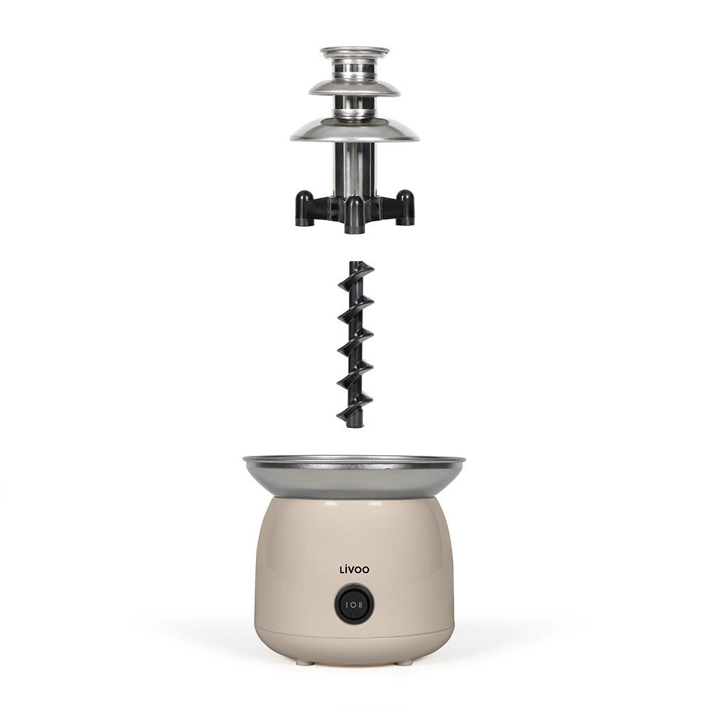 Puissance 70 W. Capacité en chocolat fondu 250 ml. Tour en acier inoxydable. 3 niveaux d’écoulement. Système avec vis sans fin sans pompe. Bouton avec fonction chauffe et fonction mise en marche. Contrôle automatique de la température. 4 pieds antidérapants.
