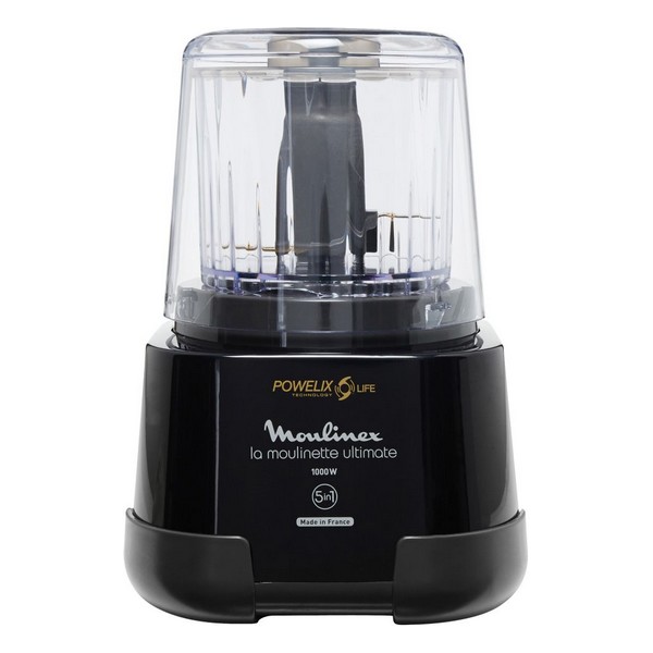 Hachoir 5 en 1 : hache, émince, mélange, broie et réduit en purée. Puissance 1000 Watts – Capacité : 350 g / 550 ml. Technologie Powelix Life : lames revêtement en titanium. Système de verrouillage – Protection surchauffe – Couvercle hermétique. Dimensions : 17 x 25.5 x 17 cm. Fabriqué en France.
