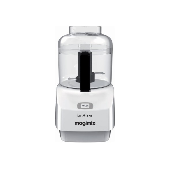 3 fonctions : hacher, mixer et émulsionner. Capacité 0,8 litre – Touche Pulse. Couvercle avec double ouverture : solides et liquides. Livre de 45 recettes.