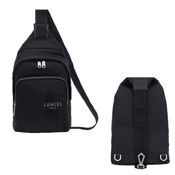 Nylon recyclé. Doublure textile. Une poche avant zippée. Un compartiment principal zippé. Une poche intérieure plaquée. Une poche intérieure zippée. Bandoulière en webbing ajustable. Dimensions: 37 x 20 x 5 cm.