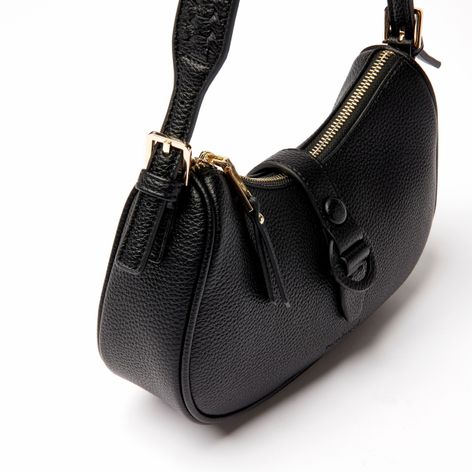 Type : Sac à bandoulière compact – usage quotidien. Matière principale : Polyuréthane (cuir végétal grainé). Finition : Mate, texture grainée. Boucle ton sur ton sur la sangle de fermeture. Sangle d’épaule avec détails tressés. Signature “Cacharel” discrètement embossée. Dimensions : 240 x 155 x 65 mm.