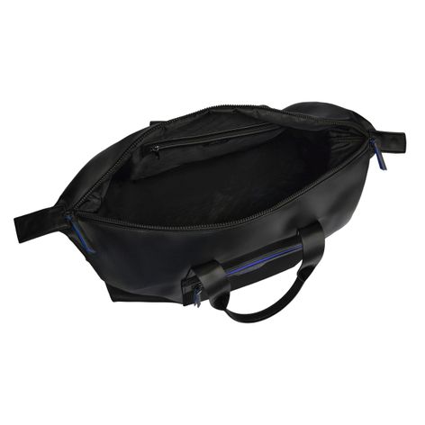 Un compartiment principal spacieux. Une poche frontale zippée pour un accès rapide. Une poche intérieure zippée pour les objets de valeur. Un choix élégant et fonctionnel, parfait pour les voyages courts ou un usage quotidien. Matière principale : Polyuréthane (cuir végan). Détails : Accents bleus vifs (zip, tirettes, logo). Style : Moderne, sportif et raffiné. Compartiments : 3 (1 principal, 1 extérieur, 1 intérieur). Fermeture : Zips robustes. Dimensions : 520 x 250 x 330 mm.