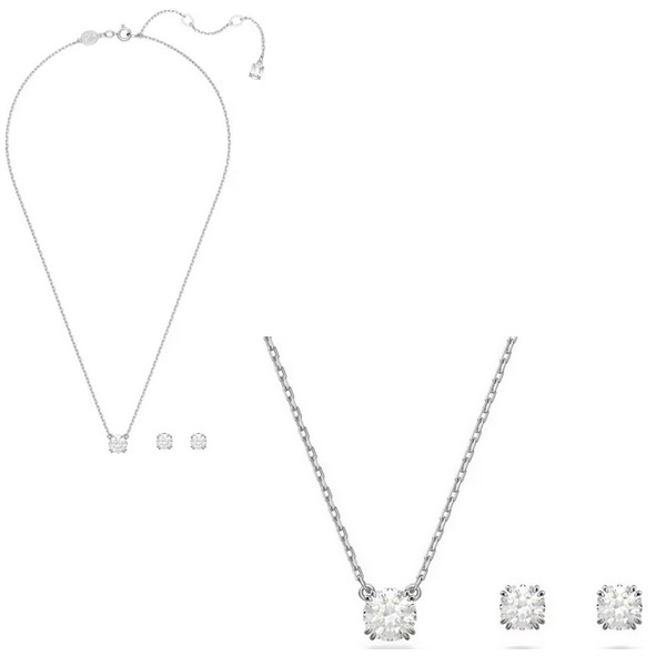Matériaux: Métal rhodié, Zircone. Longueur du collier : 38 cm. Longueur des boucles d’oreilles : 0.7 cm. Type de fermoir: Fermoir à ressort.