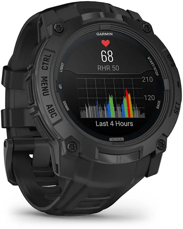 Montre GPS multisport robuste, édition Tactical. Diamètre du boîtier : 50 mm. Étanchéité : 10?ATM (100?m). Écran : AMOLED haute résolution. Autonomie estimée : jusqu’à 18 à 24 jours en mode montre, 32 à 40h en mode GPS. Fonctions clés : GPS multibandes + technologie SatlQ, lampe torche intégrée, capteurs ?ABC? . Matériaux et construction : boîtier en polymère renforcé fibre, lunette métal renforcée, verre solaire Power?Glass Usage : conçu pour les activités outdoor, situations extrêmes, aventure & tactical